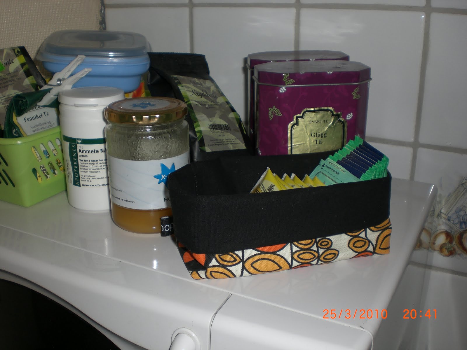 Har også sydd te-korger etter samma prinsipp som brødkorg-oppskrifta, berre med andre mål, fant også denne oppskrifta på nett ein plass.